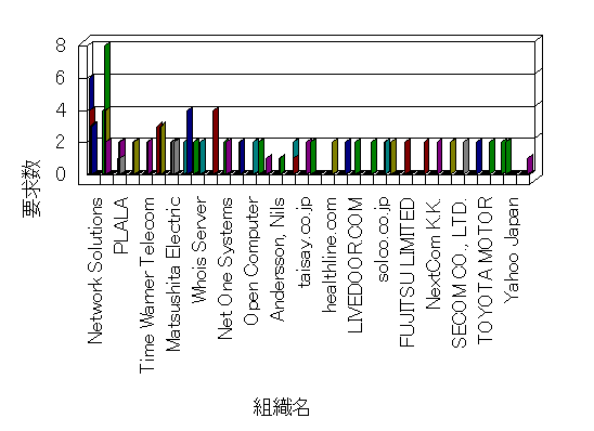 組織ユーザーにインターネット接続を提供する、商用または非営利団体、学術・行政機関などの、インターネット ドメイン で識別される団体や組織です。Microsoft Site Server Analysis は同じ組織に登録されたすべてのドメインを 1 つの組織としてグループ化します。ドメインがデータベースで使用できない場合は、1 つのインターネット ドメインが 1 つの組織を識別するのに使用されます。