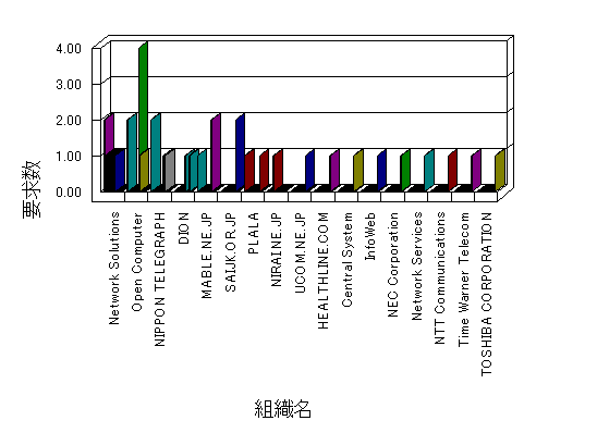 組織ユーザーにインターネット接続を提供する、商用または非営利団体、学術・行政機関などの、インターネット ドメイン で識別される団体や組織です。Microsoft Site Server Analysis は同じ組織に登録されたすべてのドメインを 1 つの組織としてグループ化します。ドメインがデータベースで使用できない場合は、1 つのインターネット ドメインが 1 つの組織を識別するのに使用されます。