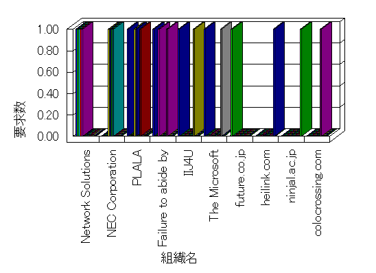 組織ユーザーにインターネット接続を提供する、商用または非営利団体、学術・行政機関などの、インターネット ドメイン で識別される団体や組織です。Microsoft Site Server Analysis は同じ組織に登録されたすべてのドメインを 1 つの組織としてグループ化します。ドメインがデータベースで使用できない場合は、1 つのインターネット ドメインが 1 つの組織を識別するのに使用されます。