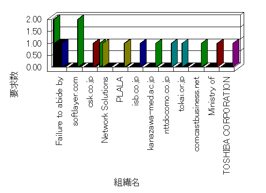 組織ユーザーにインターネット接続を提供する、商用または非営利団体、学術・行政機関などの、インターネット ドメイン で識別される団体や組織です。Microsoft Site Server Analysis は同じ組織に登録されたすべてのドメインを 1 つの組織としてグループ化します。ドメインがデータベースで使用できない場合は、1 つのインターネット ドメインが 1 つの組織を識別するのに使用されます。